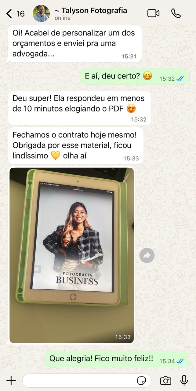 Você vai receber um link para acessar os 14 modelos de orçamentos fotográficos profissionais prontos.